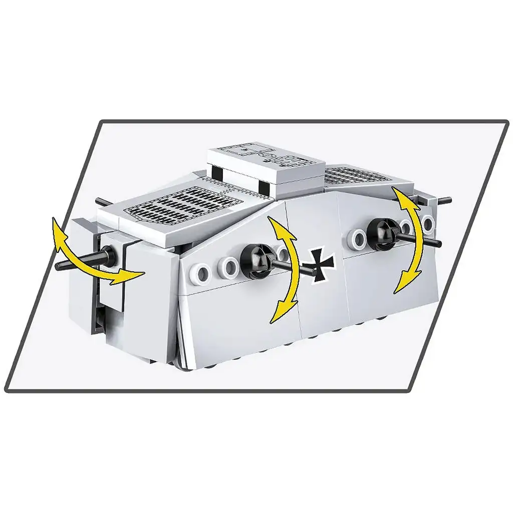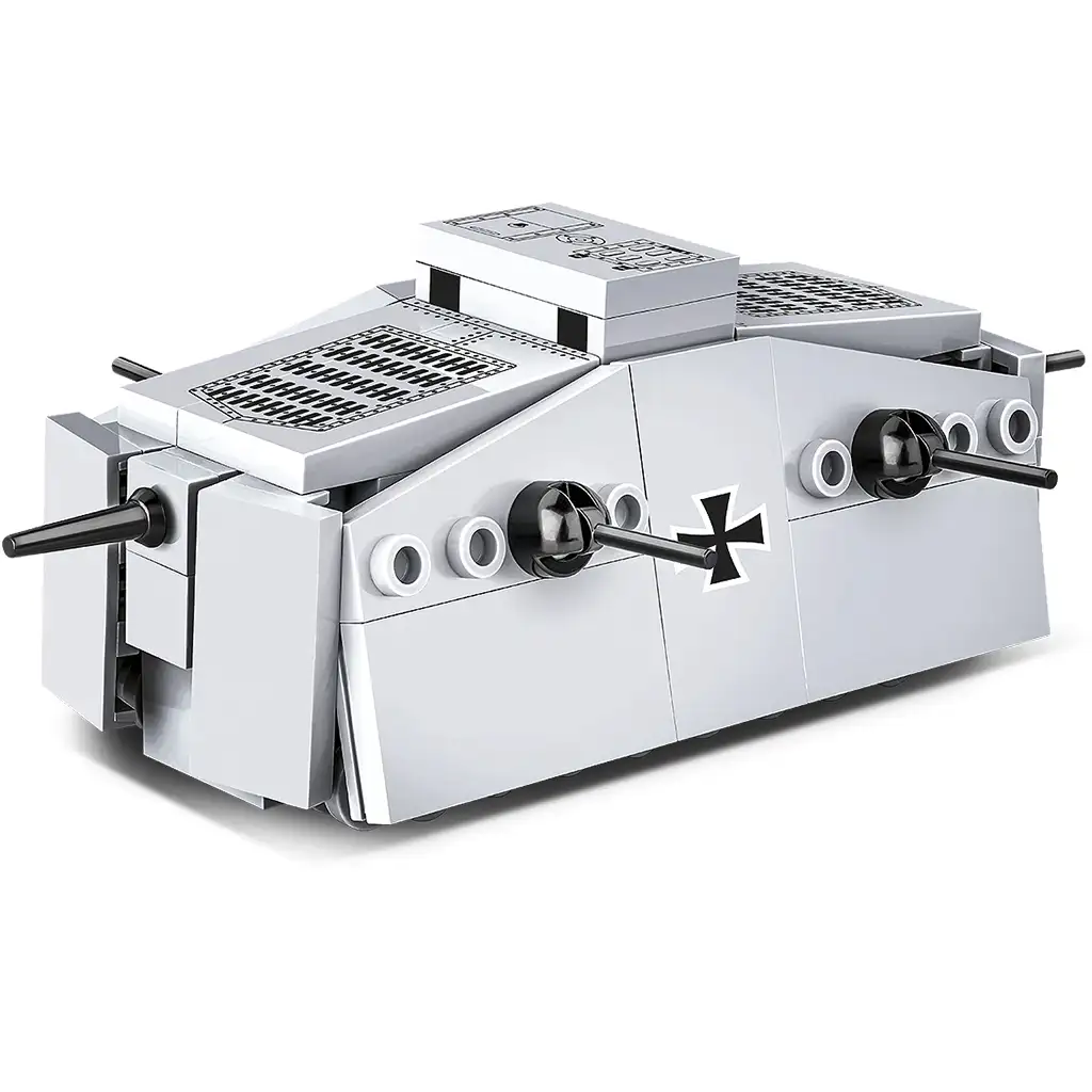 Stavebnice COBI Sturmpanzerwagen A7V představuje jeden z nejzajímavějších obrněných vozidel první světové války. A7V byl jediným německým tankem, který byl v této době vyráběn sériově, a vyrobeno bylo pouze dvacet kusů. Díky svým obrovským rozměrům a charakteristickému pancéřovému trupu se stal jedním z nejznámějších bojových vozidel své éry. Model je vyroben v měřítku 1:72, skládá se ze 119 vysoce kvalitních stavebních dílků a hotové vozidlo má rozměry 11,5 cm na délku, 7,5 cm na šířku a 4,5 cm na výšku.