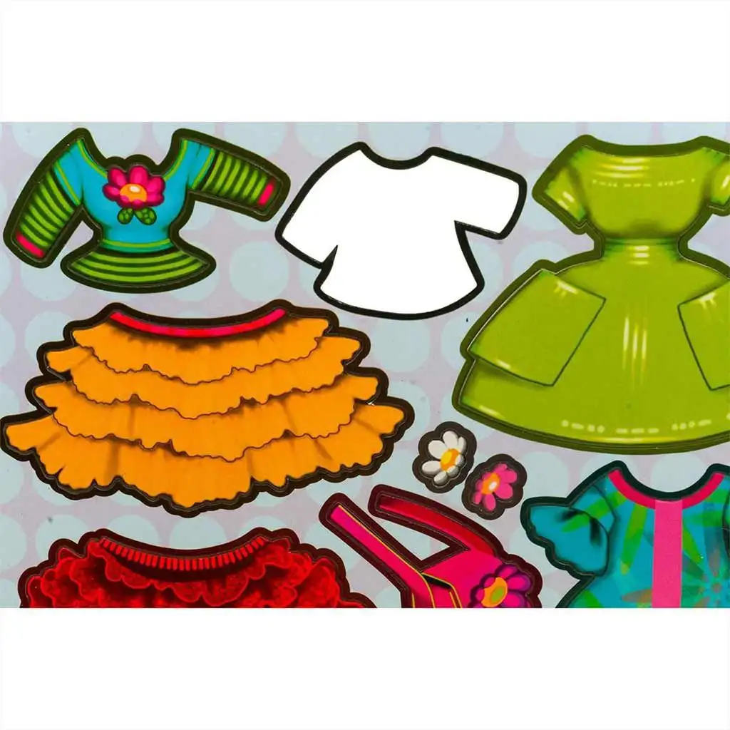- Dvě sady magnetických nálepek s mnoha kusy oblečení a doplňky