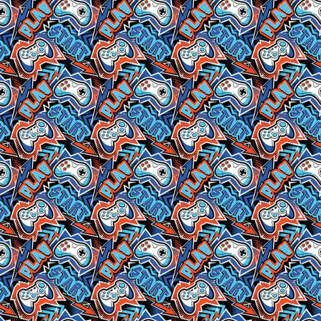 Hra může začít! Balicí papír s motivem herního ovladače je skutečným trefou do černého pro každého fanouška videoher – ať už jde o malého chlapce, teenagera nebo dospělého kamaráda-gamera. Na archu o rozměrech 100x70 cm se objevuje stylový, dynamický design: ikony ovladačů, nápisy „START“ a „PLAY“ v jasně červené, modré a černé barvě v komiksovém stylu.