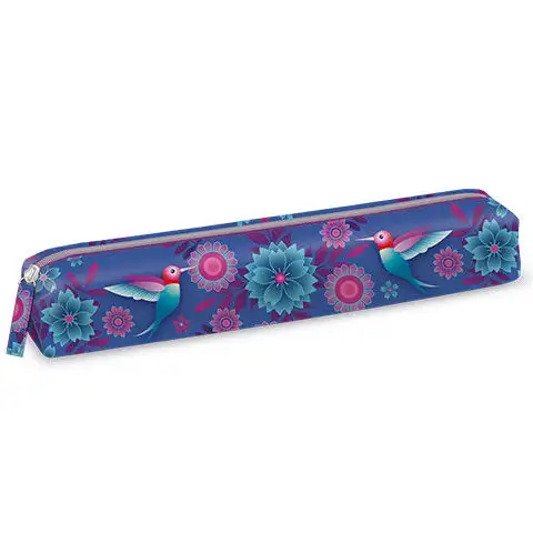 Toto pouzdro na tužky nelze nazvat běžným, protože s jeho dvacet centimetrů dlouhým může pohodlně obsahovat delší pravítko nebo kružítko, ale je pouze čtyři centimetry široké, takže je štíhlé a elegantní a může obsahovat pouze nejnutnější psací potřeby, na oplátku nezabírá mnoho místa a je zaručeně jedinečné. Jeho jediná velká přihrádka se otevírá zipem a zužuje se dolů, takže díky své dvacet centimetrů dlouhé může pohodlně obsahovat menší pravítko, kružítko a psací potřeby potřebné pro každodenní studium.