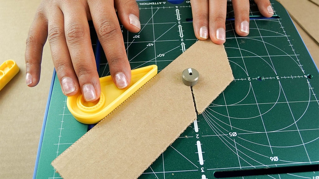 , který funguje jako rychlý děrovač, se kterým lze snadno řezat karton, plst a další materiály. Sada obsahuje také děrovač, řezací nástroj, připojitelnou pravítko, šablony na kruhy a úhly a také vynálezcovský pracovní sešit, který pomáhá dětem realizovat vlastní nápady.