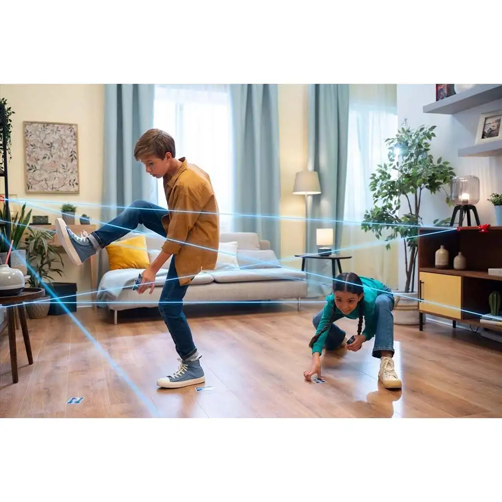 Herní prostor je snadno a flexibilně nastavitelný – provázky můžete připevnit na jakýkoli nábytek nebo povrch, takže každá hra znamená novou překážkovou dráhu. Odpočítávání a pohybové senzory se postarají o napětí: pokud se někdo dotkne „laseru“, bomba začne tikat rychleji! Cílem hry je dostat se ke kontrolnímu panelu a včas zastavit odpočítávání. Můžete hrát sami, ale také ve skupině, takže se mise promění ve skutečnou týmovou spolupráci.