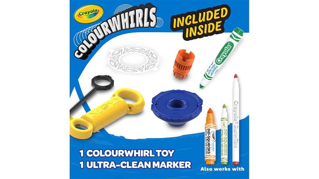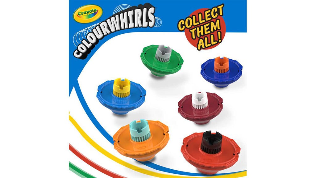 Colourwhirls povyšuje zábavu na novou úroveň v typických uměleckých a řemeslných sadách. Než začne zábava, děti si mohou přizpůsobit své káči s opakovaně použitelnými horními disky, které jsou skvělé pro umělecké vyjádření. I když tříbalení obsahuje tři ultra čisté fixy, děti mohou použít téměř jakýkoli fix Crayola, pokud přidají adaptér skrytý v rukojeti. Tyto sady jsou také skvělé pro hraní, protože děti mohou používat horní disky pro klasickou zábavu s káčou i bez fixů. S 12 barvami káč Colourwhirls mohou malí umělci vytvořit spirálové umění s jakoukoli kombinací horních disků a káč.
