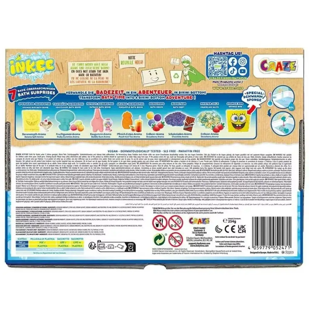 Proměňte koupání v zábavné, voňavé dobrodružství se SpongeBobem a jeho přáteli! Sada Inkee SpongeBob Koupelové Dobrodružství promění každé koupání v opravdový podvodní zážitek plný překvapení, barev a fantastických vůní. Pokud chcete, aby koupání nebylo jen nudnou denní rutinou, ale jednou z nejočekávanějších událostí dne, tato sada je perfektní volbou.