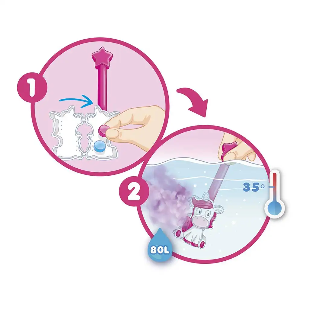 Děti mohou samy ovládat barevnou magii pomocí držáku ve tvaru jednorožce, který činí šumění a barvicí efekt tablet ještě zábavnějším. Koupelové tablety obsahují mandlový olej, aby pečovaly a hydratovaly dětskou pokožku, a díky jemnému a přátelskému složení jsou zcela bezpečné. Produkt je 100% veganský, bez mikroplastů, lepku, parafínu a SLS, takže je ideální volbou i pro děti s citlivou pokožkou.
