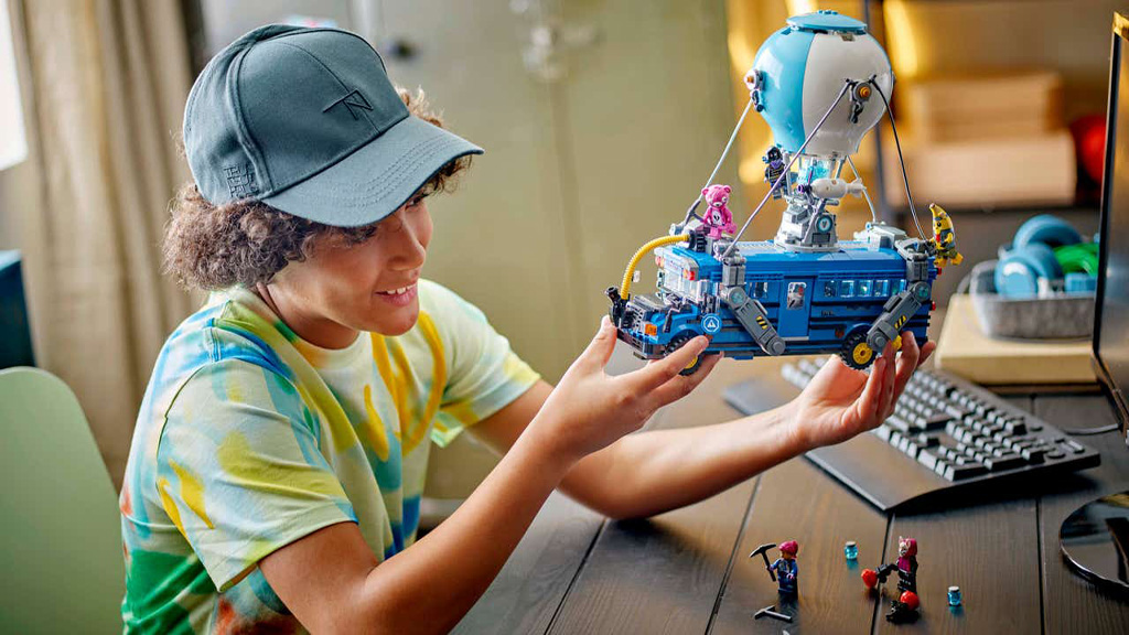 Aktuální kolekce LEGO Fortnite obsahuje poslední kousek, 954dílný Battle Bus. Jedná se o cihlovou repliku horkovzdušného balónu z hry, která má „otáčející se kola, modro-žlutý balón a odnímatelnou střechu“. Sada obsahuje Slurp Juice, Pickaxe, Grappler a Slap Juice, stejně jako devět LEGO minifigurek: Battalion Brawler, Adventure Peely, Brite Bomber, Cube Assassin, Trespasser Elite, Raven, Meowscles, Drift a Cuddle Team Leader. Stavitelé od 10 let mohou umístit minifigurky do autobusu!