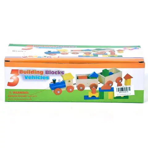 Dřevěná vlaková sada s barevnými stavebními kostkamiDřevěná vlaková sada s barevnými stavebními kostkami