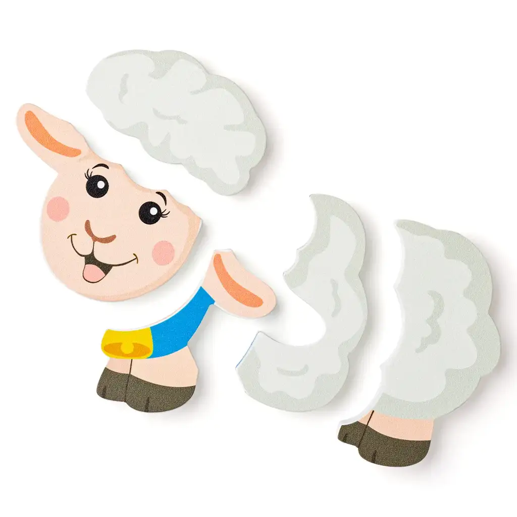 Roztomilý úsměv ovečky a přátelské, barevné pozadí činí tuto hračku velmi atraktivní pro děti. Puzzle složené z pěti samostatných dílů pomáhá seznámit malé děti se základy tvarů a skládání, zatímco rozvíjí koordinaci ruky a oka a schopnost soustředění.