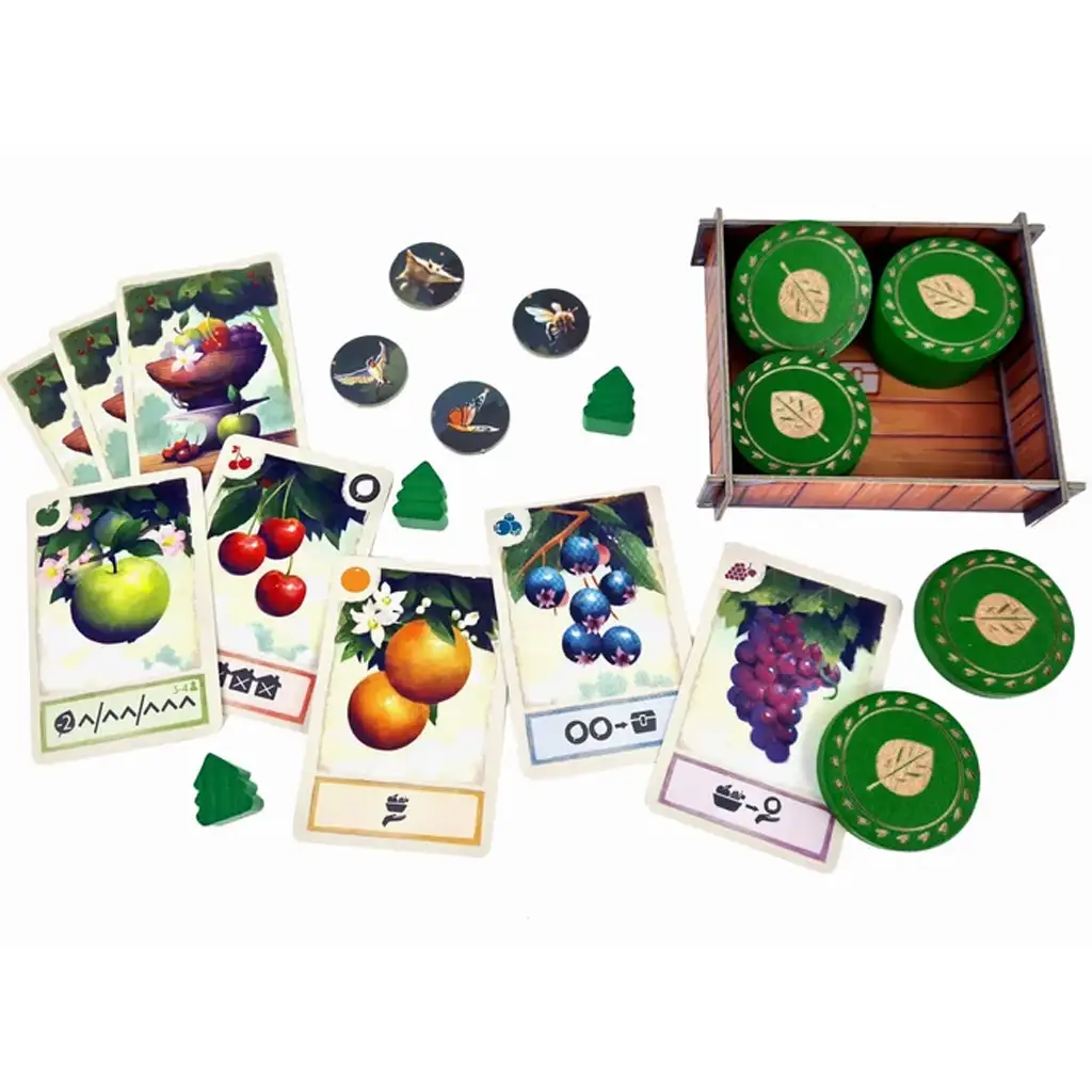 Prodávané karty ovoce poskytují speciální schopnosti, například můžete získat více peněz nebo provádět speciální akce. Musíte také věnovat pozornost správě mincí: peníze získané okamžitě musíte utratit v daném kole, zatímco částky uložené v truhle si můžete ponechat na později. Své budovy můžete rozvíjet po úrovních a každá plně postavená budova přináší na konci hry speciální bonusové body.