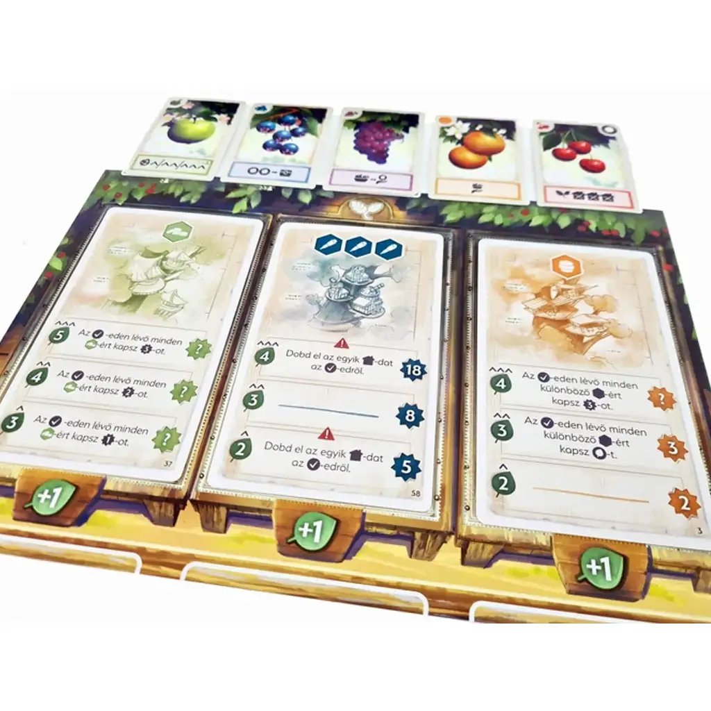 Lidé stromů je rodinná desková hra v maďarštině, kde hráči jako členové „lidí stromů“ soutěží o stavbu nejvýnosnějších budov. Během hry obchodujete s různými druhy ovoce, abyste získali peníze, které můžete použít na rozvoj svých budov. Načasování prodeje je klíčové, protože tržní hodnota ovoce je určována aktuálními zásobami. Čím žádanější je ovoce, tím více peněz stojí, takže strategie a sledování trhu jsou nezbytné pro úspěch.