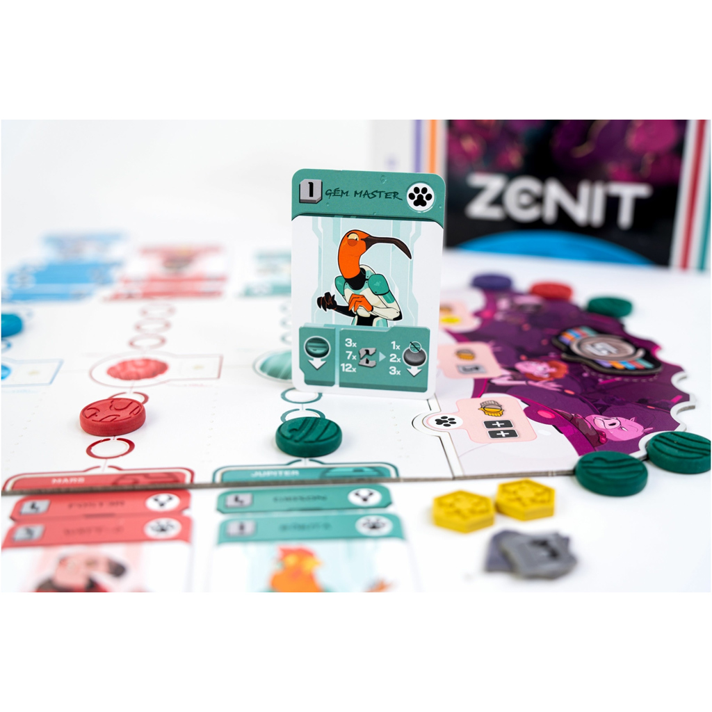 Společenská hra Zenit je napínavý dvouosobný strategický souboj, v němž se spolu s vaším dítětem můžete ponořit do boje o budoucnost Sluneční soustavy. Během hry budete v zastoupení různých frakcí – lidí, robotů a animodů – obratně taktizovat, zatímco dobýváte planety a získáváte vliv v senátu. Pokud máte rádi hry, kde každé rozhodnutí má váhu, tato vás jistě zaujme.