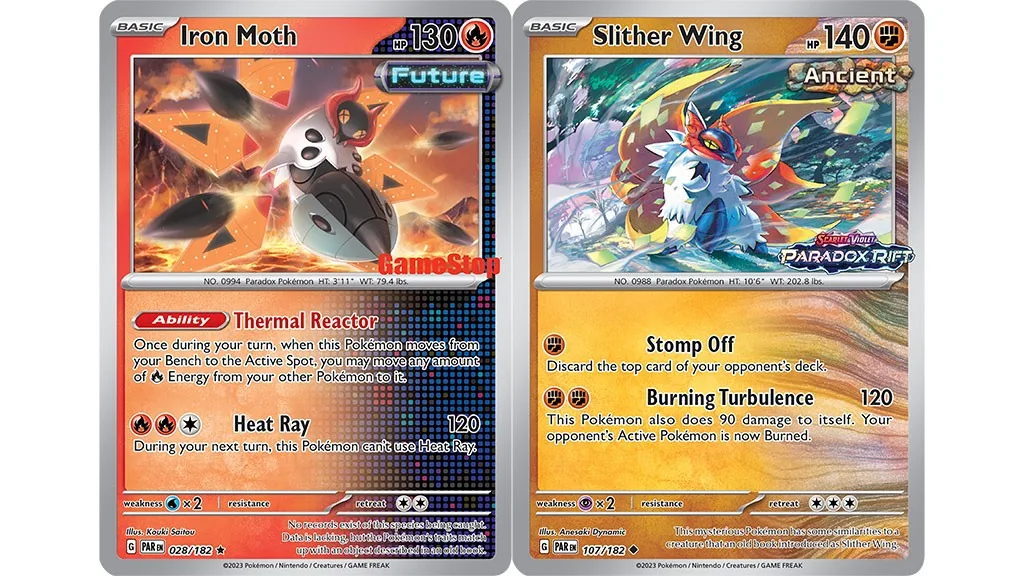 Scarlet & Violet - Paradox Rift je nyní k dispozici v booster balíčcích, Elite Trainer Boxech a mnoho dalšího. Při nákupu Pokémon TCG v hodnotě 15 dolarů nebo více mohou malí trenéři získat speciální promo kartu Iron Moth od GameStopu v USA a Kanadě, stejně jako od EB Games v Austrálii a na Novém Zélandu. Zákazníci Best Buy mohou také získat speciální promo kartu Slither Wing. Děti mohou hrát Scarlet & Violet - Paradox Rift také digitálně pomocí aplikace Pokémon TCG Live. Trenéři mohou sbírat a bojovat s novými Ancient a Future Pokémony a odemknout prémiový balíček výměnou za krystaly získané dokončením denních úkolů.