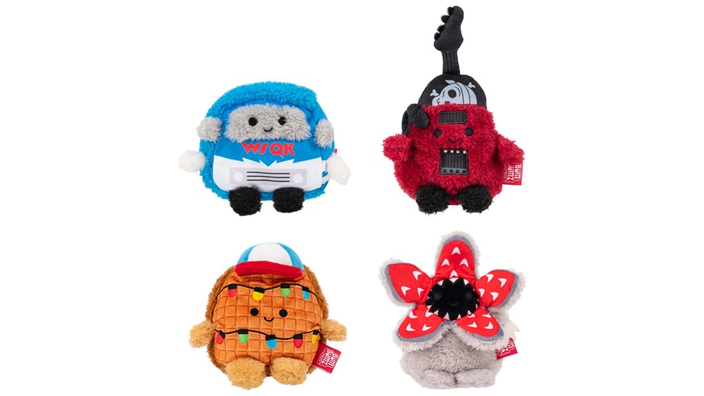 Chibi styl se objevuje také na plyšových figurkách, ze kterých si mohou děti od 3 let vybrat ze šesti různých variant. Tyto plyšáky zobrazují oblíbené postavy jako Eleven, Dustin, Lucas, Will, Steve a Demogorgon. Do zábavy se zapojují také série Squishmallows a BumBumz, takže jak hrdinové, tak i padouši jsou k dispozici v měkké, objímatelné podobě. Klasická postava Squishmallows, Emily, nosí „Thinking Cap“, zatímco Dante je vidět v tričku „Hellfire“. Kromě toho jsou samostatně k dostání i plyšové figurky Dustina a Demogorgona. Čtyřbalení BumBumz (za 4,99 dolarů), které je k dispozici na Amazonu, Targetu a Walmartu, představuje měkčí stránku „převráceného světa“ (Upside Down): najdete v něm vafli ozdobenou vánočními světýlky, Demogorgona, vintage minibus a Eddieho kytaru. Tyto plyšáky jsou skvělé nejen na hraní, ale i na sbírání a potěší každého fanouška.V nabídce najdete také 8palcovou plyšovou figurku Demogorgona, která je doporučena pro děti od 3 let. Pokud stisknete tělo plyšové figurky, její hlava se otevře a objeví se ústa a zuby. Kromě toho přehrává i zvukové efekty, což činí zážitek ze hry ještě vzrušujícím. Tento plyšák je perfektní volbou pro každého fanouška Stranger Things, který má rád originální a interaktivní hračky.