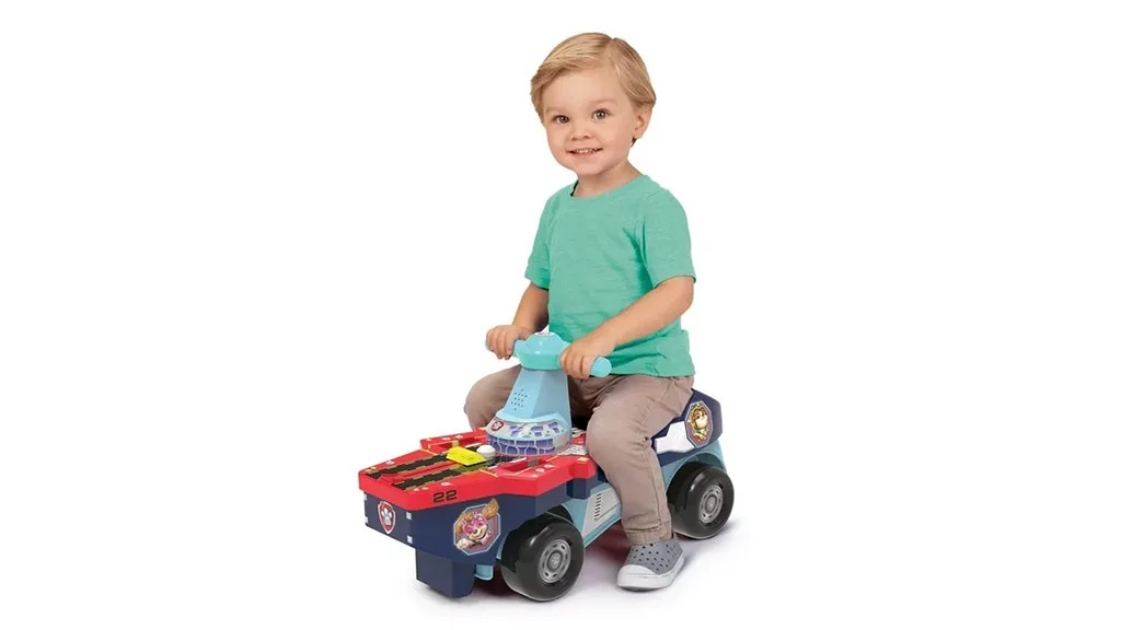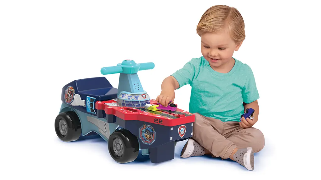 Toto vozidlo má dva proudové motory, vzletovou a přistávací dráhu, startér a tlačítka umístěná na řídítkách, která přehrávají zvuky a melodii z oblíbeného seriálu Tlapková patrola, zatímco děti jedou.