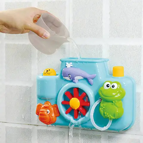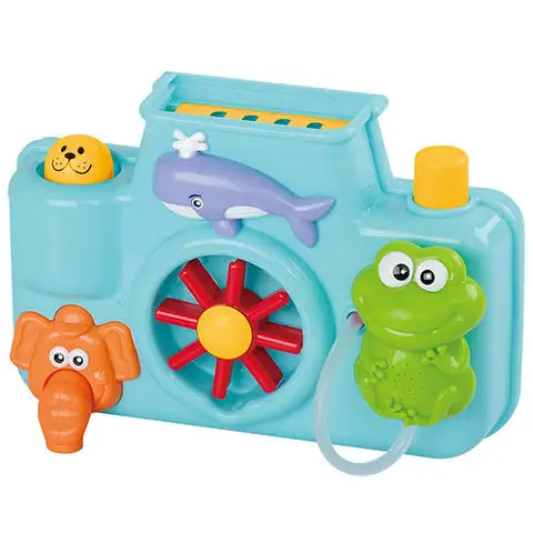 Tato skvělá koupací hračka se asi nejvíce podobá fotoaparátu. Hračka určená speciálně pro miminka je bezpečná k použití při koupání díky své velké velikosti a absenci malých dílů. Různá zvířata mají různé vlastnosti, uprostřed se nachází mlýnské kolo, které se začne otáčet, když do otvoru na vrchu nalijete vodu. Díky této hračce si miminka opravdu užijí čas strávený ve vaně a navíc to bude snazší i pro rodiče, protože hračka upoutá pozornost dětí.