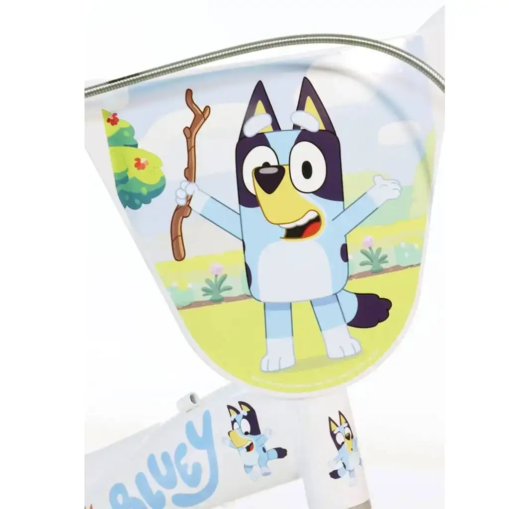 Dětské kolo Bluey 12” je ideální volbou pro malé cyklisty, kteří teprve začínají objevovat svět jízdy na kole. Veselý bílý, modrý a zelený design a samolepky s oblíbenou postavičkou Bluey zaručeně potěší vaše dítě, zatímco bezpečná a stabilní konstrukce usnadní učení.