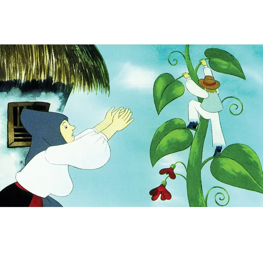 Diafilm "O fazoli, která rostla až do nebe" je dojemný příběh o chudém chlapci, který vyměnil svou jedinou krávu za kouzelnou fazoli a tím překvapil svou matku. Na začátku příběhu chlapec přinese domů fazoli, kterou mu dal starý muž místo krávy.