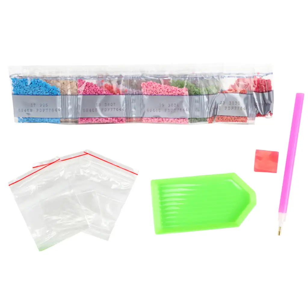 Diamantové malování je skvělý společný program pro rodiče a děti: je hravé, ale zároveň rozvíjí jemnou motoriku, soustředění i trpělivost. V sadě najdete vše, co potřebujete: předtištěné samolepicí plátno, barevné diamantové kamínky, pero na kamínky, vosk, tácek a sáčky na uchovávání. Symboly na plátně usnadňují umisťování kamínků, takže si hravě poradí i menší děti.