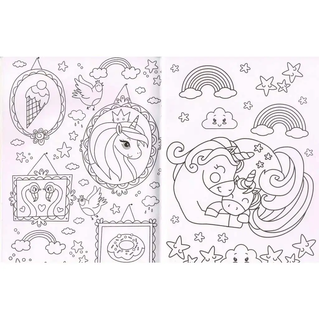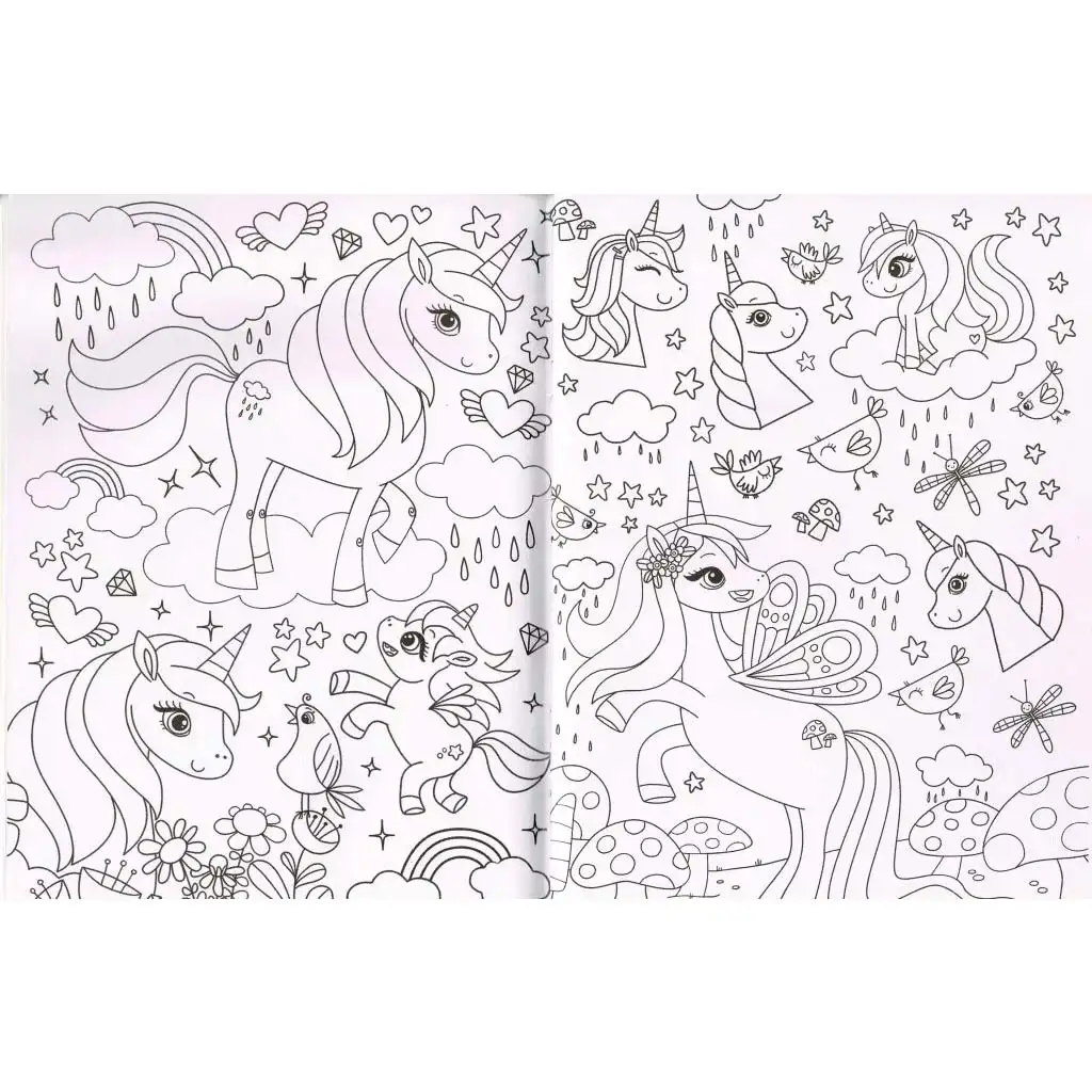 Ponoř se do kouzla a tvoř úžasné pohádky s diamantovým omalovánkovým sešitem – Jednorožci! Tento nádherný omalovánkový sešit zavede děti do okouzlujícího, duhově barevného světa, kde na ně čekají třpytící se jednorožci s lesklou hřívou, usmívající se mraky a létající srdíčka, aby ožily díky barevným pastelům a třpytivým samolepkám.