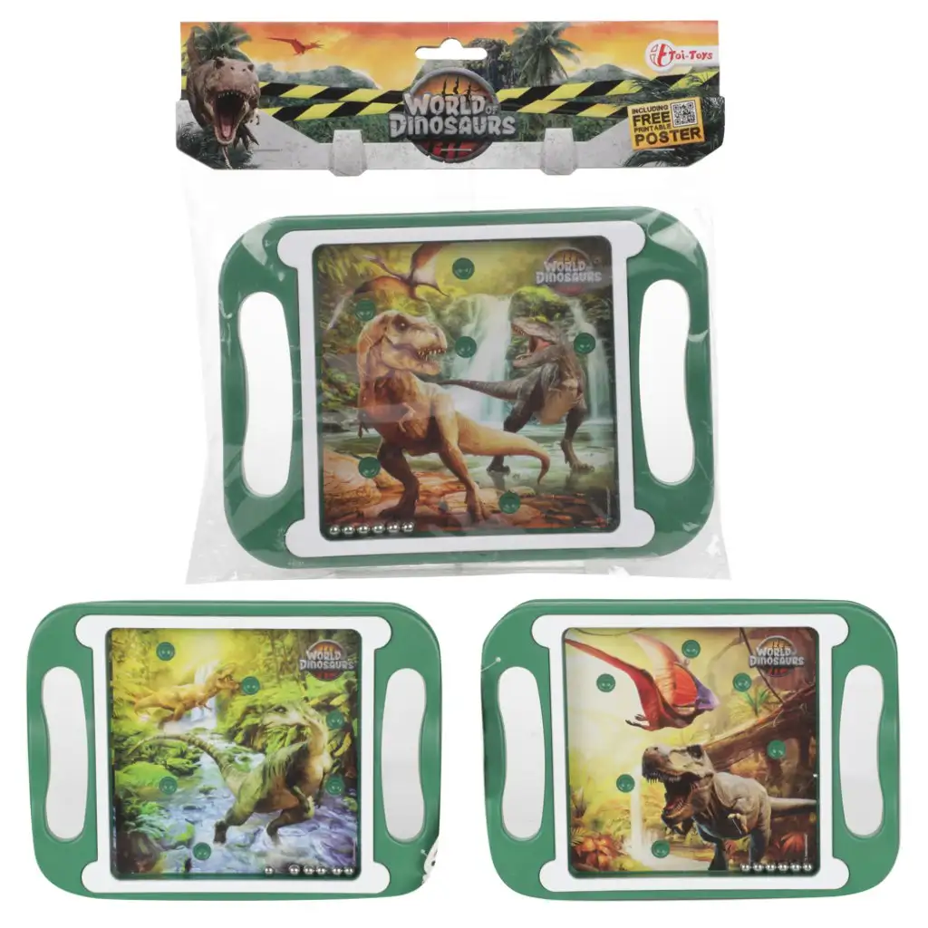 Tato dinosauří dovednostní hra je skvělou volbou, pokud chcete, aby se vaše dítě při zábavě zároveň rozvíjelo v manuální zručnosti a soustředění. Úkol je jednoduchý: pomocí pohybování deskou je potřeba nasměrovat kovové kuličky do správných otvorů. Hra je k dispozici s různými dinosauřími pozadími, takže každá varianta představuje napínavé dobrodružství ve světě dinosaurů! Díky kompaktním rozměrům si ji můžete vzít kamkoliv s sebou – ideální i na cesty.