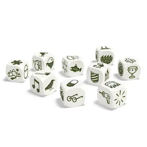 Myslíš si, že o všem dokážeš vymyslet dobrý příběh? Pokud ano, pak si zamiluješ příběhové kostky. Hoď devíti kostkami a můžeš začít vyprávět příběh, který tě inspirovaly obrázky na kostkách, ale dávej pozor, aby ti neunikla ani jedna. V tomto balení najdeme devět potřebných kostek pro hru, které jsou především zdobeny obrázky souvisejícími s dobrodružstvími. Na devíti kostkách viditelných více než padesát čtyři obrázků může být základem pro miliony různých příběhů. Kostky s dobrodružstvími můžeme klidně míchat s jinými příběhovými kostkami, čímž vytvoříme ještě více a zajímavějších příběhů.