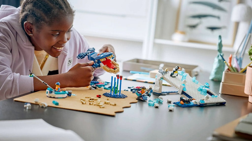 Pokud je vaše dítě skutečným milovníkem přírody, zaručeně si skvěle užije tuto stavebnici. Sada LEGO obsahuje 461 dílků, ze kterých lze postavit pohyblivou figurku velryby, která se právě krmí vznášejícími se krily. Součástí sady je také ledová skluzavka, po které mohou sjíždět tučňáci a vědci. Tato sada nejen rozvíjí kreativitu, ale hravou formou seznamuje děti s arktickou faunou a vědeckými objevy. Kvalitní dílky LEGO zajišťují odolnost a dlouhotrvající zábavu na mnoho hodin.