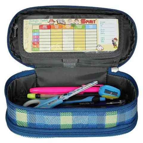 Penál Spirit, vyrobený z vysoce kvalitního polyesterového materiálu, má základní pruhovanou barvu v modré, kterou zelené odstíny činí ještě vzrušující a módní. Tento penál není jen jednoduchý nástroj, ale také stylový doplněk, který oživí a zpestří každodenní školní život dítěte.