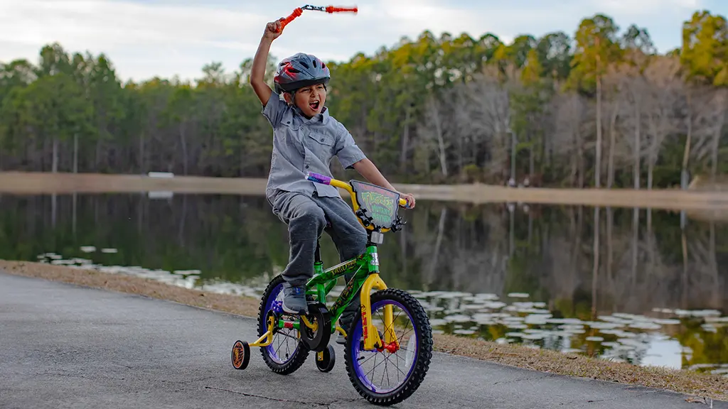 Tento jízdní kolo má jedinečné grafiky Želv Ninja na rámu, vidlici, krytu řetězu, sedle a ochraně řídítek. Mezi jeho příslušenství patří odnímatelné nunčaky pro hraní rolí a odnímatelná a nastavitelná přídavná kolečka. Toto kolo může být oblíbené nejen u dětí, ale také poskytuje zvláštní zážitek pro fanoušky, protože detaily a doplňky skutečně oživují svět Želv Ninja. Bezpečnost a zábava jsou zaručeny, takže je ideální volbou pro každého malého dobrodruha!