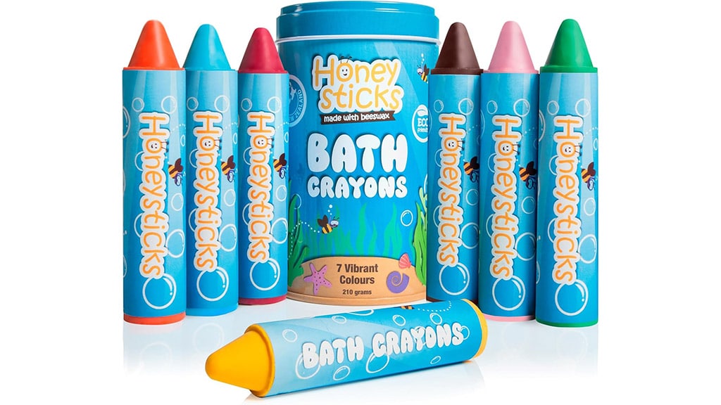 Udržitelné koupací hračky? Můžeš se na nás spolehnout, jsme nadšení! Tato sada obsahuje sedm kříd, které zpestří čas koupání, každá je vyrobena z netoxického, neparfémovaného včelího vosku. Děti všech věkových kategorií mohou přidat trochu barvy do vany, kreslit na stěny a popustit uzdu své kreativitě. Když koupání skončí, kresby lze snadno setřít.