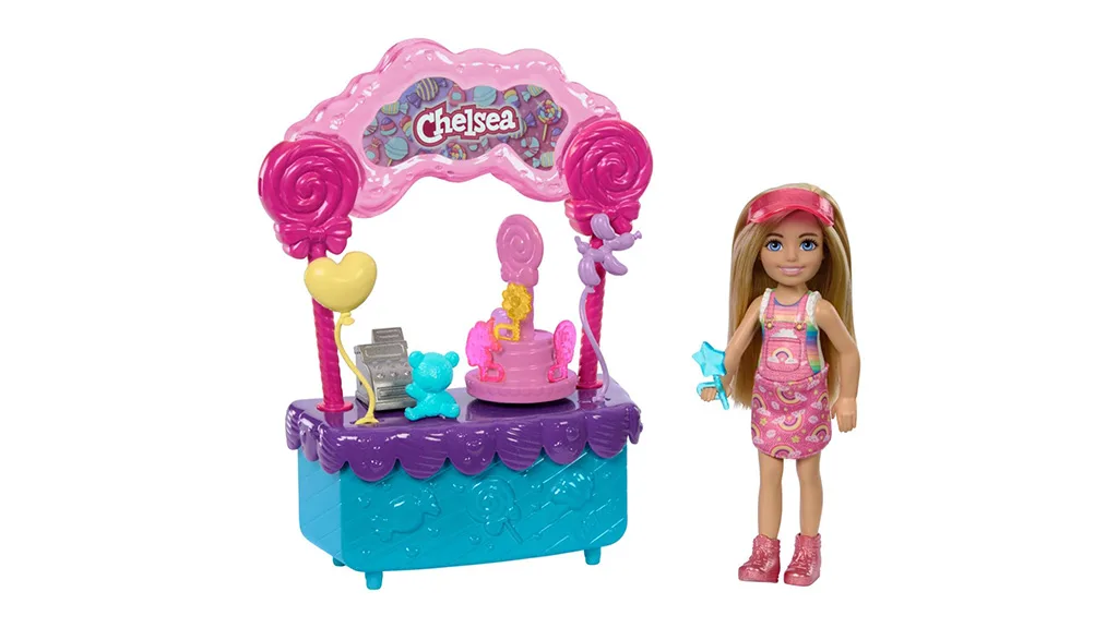 Děti si mohou vychutnat sladkou pochoutku s Chelsea a jejím stánkem s lízátky. V roztomilém růžovém slunečníku a oblečení Chelsea provozuje svůj stánek s lízátkovými dobrotami, roztomilým plyšovým medvídkem a party balónky.