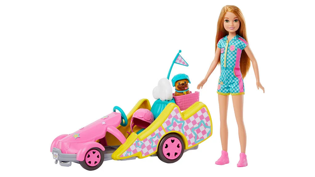 Děti mohou vyrazit na trať s touto panenkou Stacie a jejím gokartem. Stacie je připravena na rychlost ve svém závodním oblečení a se svým pejskem. Sada hraček obsahuje panenku, pejska, gokart, připojitelnou vlajku, připojitelný košík, sadu samolepek a tři doplňky.