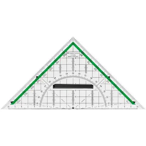 Tento rovnoramenný pravouhlý trojúhelník pravítko bude určitě tvým oblíbeným, pokud budeš muset hodně konstruovat, protože má mnoho vlastností, které ti práci usnadní. Číslování začínající od středu, úhelník o 180 stupňů, který je veden i na vnější hraně pravítka, a na přeponu kolmá měřítka jsou jen drobnosti, které se brzy naučíš používat, a s jejich pomocí budeš moci postupovat mnohem snadněji a rychleji při konstrukčních úkolech. Velká odnímatelná rukojeť zase zajišťuje, že pravítko budeš moci snadno pohybovat, takže tvé kresby zůstanou mnohem čistší.