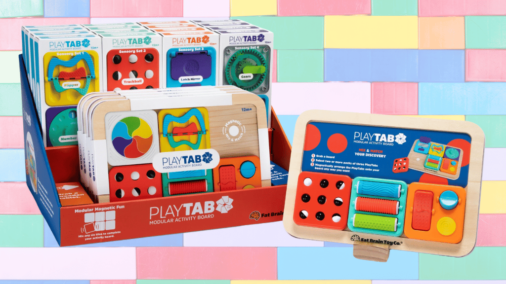 Modulární hrací deska od Fat Brain Toys je interaktivní, smyslová hračka pro děti od 12 měsíců a starší. Tato inovativní aktivní deska je postavena na robustním dřevěném základu, ke kterému patří šest magneticky připevnitelných dlaždic, které lze snadno vyměnit. 12 jedinečných dlaždic umožňuje dětem vytvořit jedinečný herní zážitek, který stimuluje jejich představivost a zvědavost. Každá dlaždice nabízí různé funkce, včetně otáčejících se ozubených kol, pískajících tlačítek, barevných kuliček, které se kutálejí labyrintem, a klikacího kotouče.