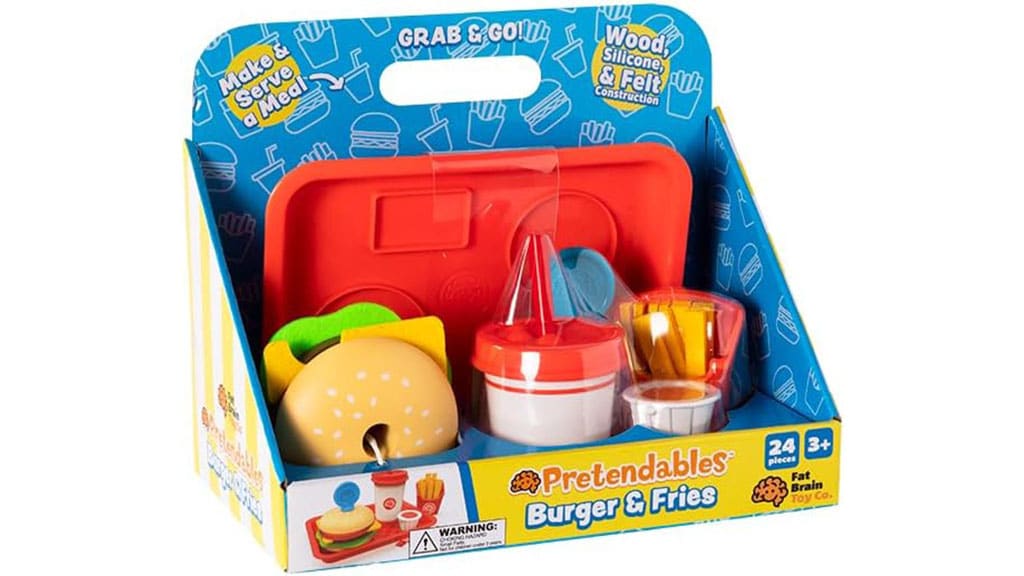 Společnost Fat Brain Toys rozšířila nabídku Pretendables o hamburgery a hranolky! S touto 24dílnou sadou si děti mohou zahrát na skutečné jídlo a připravit si lahodně zábavný hamburger. Sada obsahuje všechny potřebné prvky, aby děti mohly kreativně a zábavně trávit čas, zatímco rozvíjejí svou představivost a sociální dovednosti. Během hry se děti naučí základy přípravy jídla a mohou si užít radost ze společné hry s přáteli nebo rodinnými příslušníky.