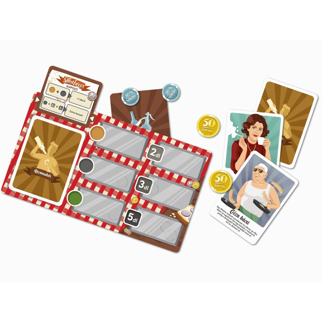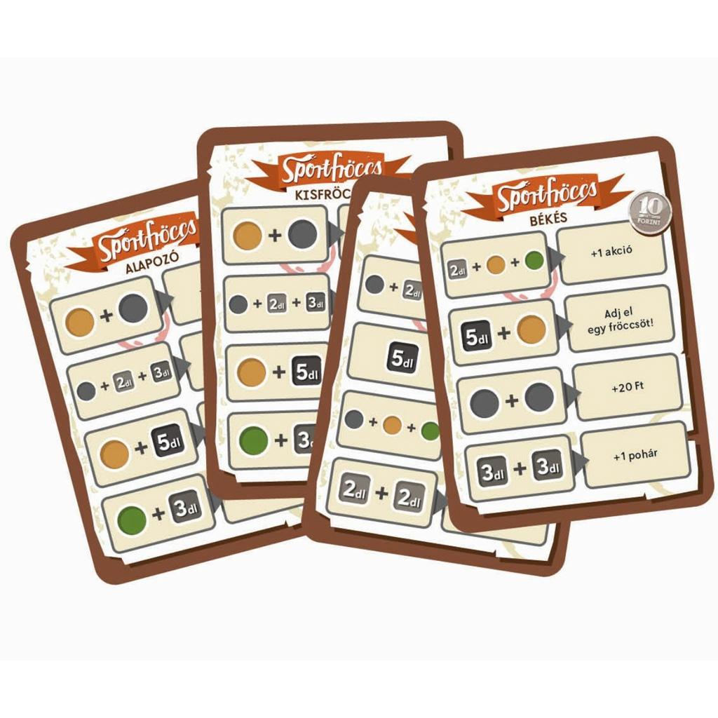 Fröccs: Sportfröccs, rozšíření stolní hry, posune zážitek ze základní hry na novou úroveň a nabídne vám pestřejší a napínavější herní průběh. Pokud už máte rádi atmosféru Fröccse, toto rozšíření vám poskytne více možností a umožní činit během hry ještě více taktických rozhodnutí. Nové postavy, speciální schopnosti a čerstvé výzvy udělají z každé partie jedinečný zážitek, takže se rozhodně nebudete nudit.