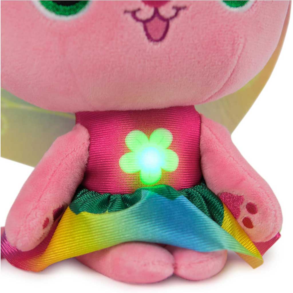 Speciální světelná funkce hru ještě více oživí: malý květ na bříšku svítí, takže vytváří ještě kouzelnější atmosféru i při večerním vyprávění pohádek. Plyšová hračka má také světelné a zvukové efekty, které navozují různé nálady, takže se vaše dítě snadno zapojí do hry plné fantazie. Tato roztomilá figurka nejen baví, ale také podporuje emoční vývoj a kreativitu. Ideální dárek pro každého fanouška Gabi domečku pro panenky, který má rád pohádkový, vílí svět.
