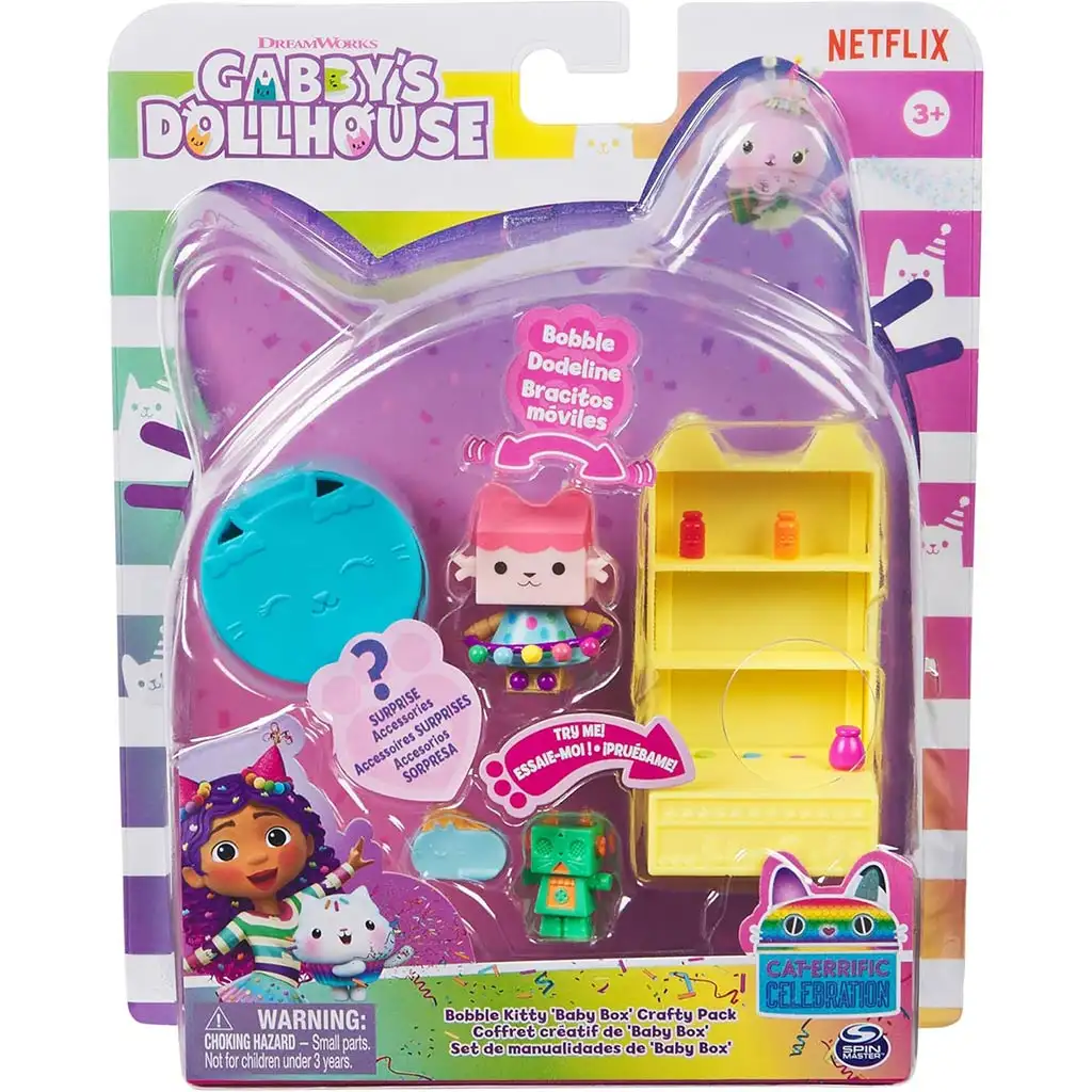 Udělejte herní čas svého dítěte výjimečným s nábytkem Gabi party a sadou překvapení, která ho přenese do vzrušujícího světa Gabiho domečku! Tato roztomilá sada přichází s Baby Boxem, kreativním malým medvídkem, který je připraven na veselou párty. Sada obsahuje barevný regálový systém pro uložení doplňků a dekorací a tajnou krabičku, která skrývá překvapení. Součástí balení je figurka Baby Box s pohyblivými pažemi, takže hra může snadno ožít. Kromě toho roztomilé doplňky jako mini robot, vtipné brýle a roztomilý dekorativní prvek dotvářejí atmosféru párty. Děti mohou rozvíjet svou fantazii tím, že si vymýšlejí vlastní příběhy se sadou, zatímco rozvíjejí svou kreativitu a zručnost. Perfektní doplněk ke kolekci hraček Gabiho domečku, takže na malé čeká ještě více zábavy a objevování!