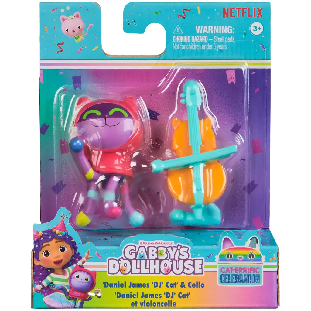 Gabiho domeček DJ Cirmos a violoncello herní sada přináší skutečný hudební zážitek do herního času dětí. DJ Cirmos, veselá a kreativní kočka, je vždy připravena obohatit den hudbou a nyní se k zábavě připojuje s roztomilým violoncellem ve tvaru kočky. Tato sada poskytuje dokonalou příležitost pro děti znovu přehrát hudební scény ze seriálu nebo vymyslet vlastní jedinečné příběhy o dobrodružstvích DJ Cirmose.