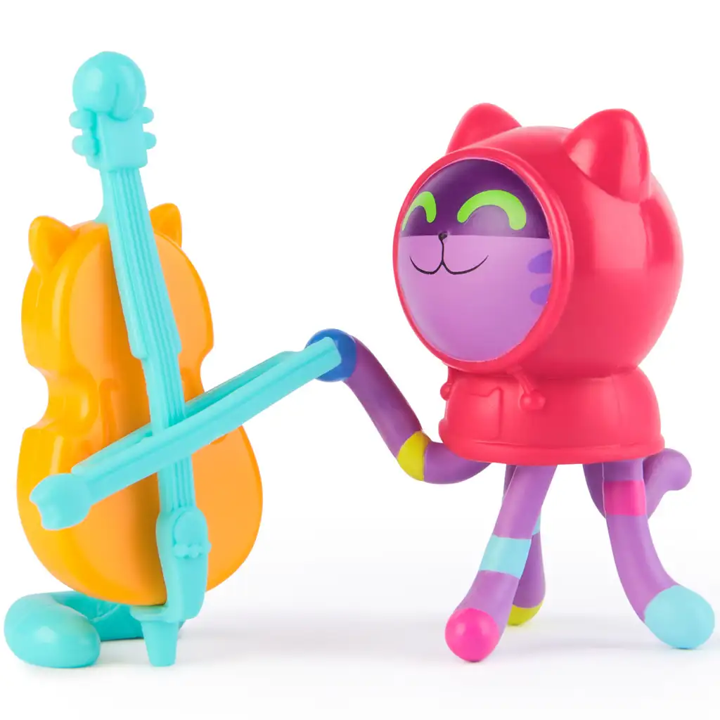 Figurka DJ Cirmos přichází s půvabným, detailním zpracováním a charakteristickou červenou kapucí, která jí dodává jedinečný styl. Violoncello ve tvaru kočky září v živých oranžových a tyrkysových barvách, které nejen evokují atmosféru seriálu, ale také skutečně upoutají pozornost. Velikost figurky a nástroje je dokonale přizpůsobena malým rukám, takže děti si s nimi mohou snadno hrát a rozvíjet svou kreativitu a hudební fantazii.