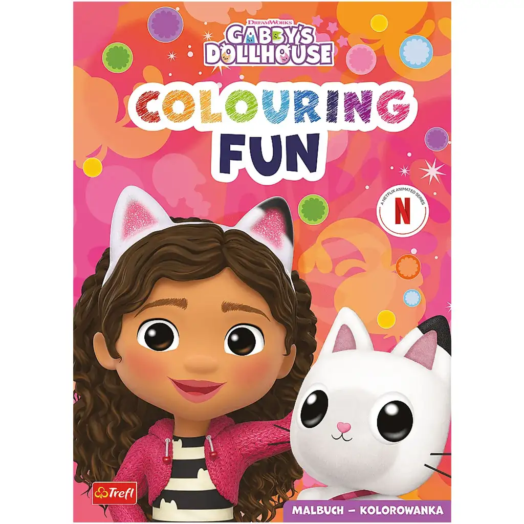 Objevte kouzelný svět Gabina domečku při vybarvování! Omalovánky „Gabby a Pandi Packa“, inspirované oblíbeným seriálem Netflixu, představují všechny dětské oblíbené postavy – Gabby, Pandi Packu, Cakeyho a mnoho dalších kočičích kamarádů, kteří ožívají k vybarvení! Tato veselá a přátelská omalovánka od společnosti Trefl zaručeně vykouzlí úsměv na tváři každého dítěte a zároveň podpoří jejich kreativitu a hravé učení.