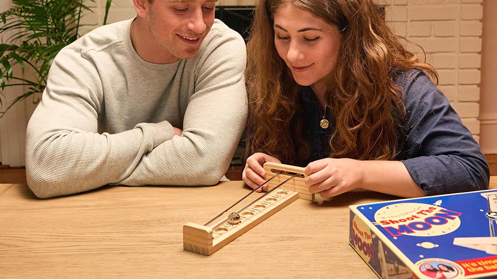 Střel na Měsíc je první ze tří her a retro oblíbenec, ve kterém musíte kovovou kuličku nasměrovat do různých planetárních otvorů, abyste získali různé body. Další hra, Stavba věže, vyžaduje, aby hráči vyvažovali geometrické tvary na nestabilním základu. Poslední hra v triu je Kollide; v této hře musí hráči soutěžit, aby jako první umístili všechny své magnety na herní plochu, aniž by se dotkly.„Nejzajímavější věcí na těchto hrách pro nás je, že nabízejí všestrannost,” říká Christopher James z Games4Two. „Lidé jakéhokoli věku mohou tyto hry hrát a skvěle se bavit. Ať už jde o rodinný večer, rande nebo večer s přáteli, každý, kdo hraje, se bude skvěle bavit.”Ve hře "Shoot the Moon" potřebují děti jistou ruku k vítězství! Musí opatrně pohybovat kovovými tyčemi, aby měsíční míček spadl na správné místo—hráči získávají body podle toho, do kterého cíle se jim podaří dostat měsíční střely. Hra rozvíjí zručnost a koncentraci, zatímco poskytuje vzrušující výzvu pro všechny věkové kategorie. Je to ideální volba pro rodinná setkání i přátelské soutěže.