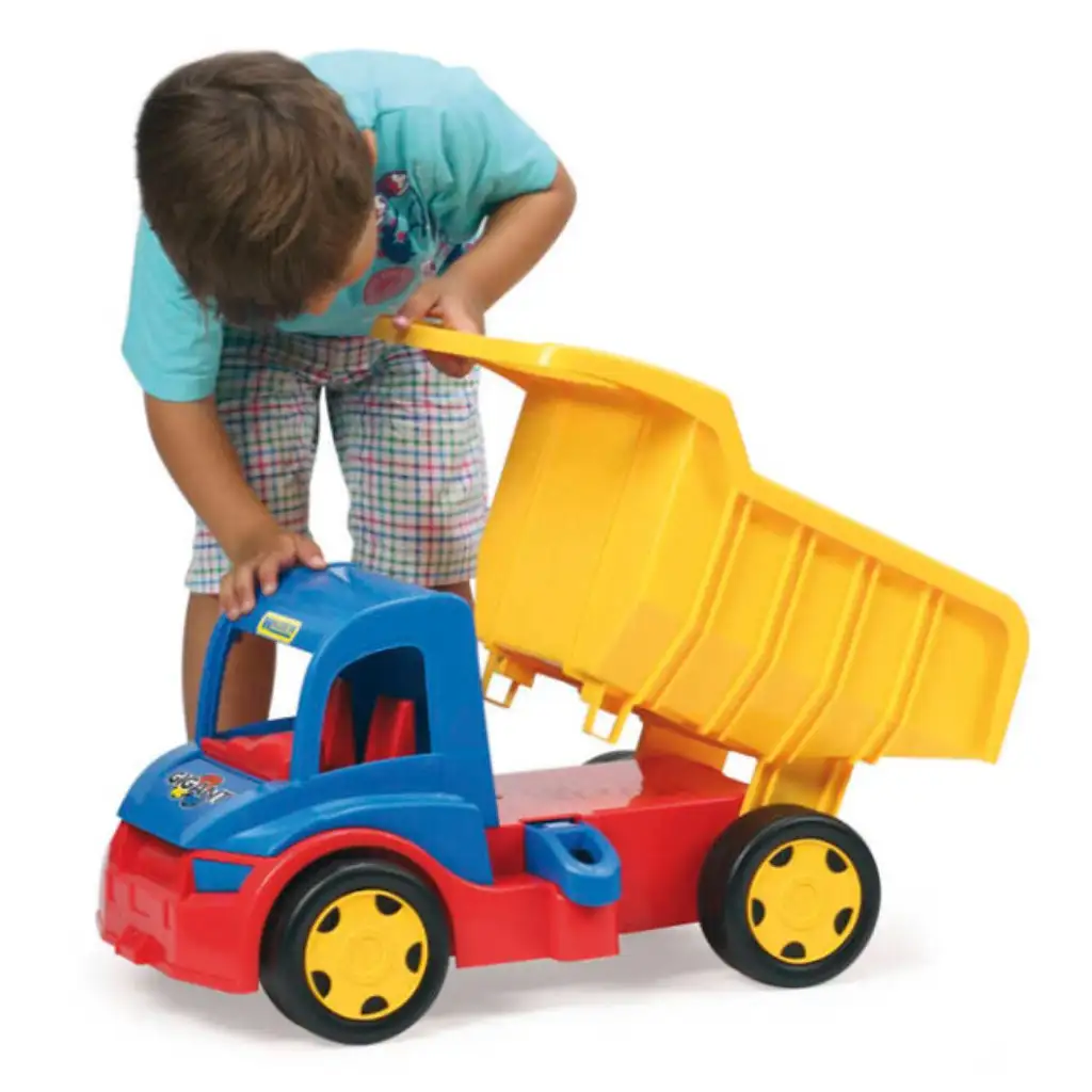 S Wader Gigant obřím sklápěčem může vaše dítě zažít skutečná stavební dobrodružství! Tento masivní, odolný a barevný sklápěč je ideální volbou pro pískoviště, zahradu nebo dokonce pro vnitřní hry. Díky nosnosti až 150 kg vydrží i na nejnáročnějším terénu, zatímco jeho sklápěcí korba umožňuje snadnou přepravu nákladu. Velikost 55 cm je ideální pro malé ruce a zaručeně rozvíjí motorické schopnosti, fantazii a kreativitu vašeho dítěte.