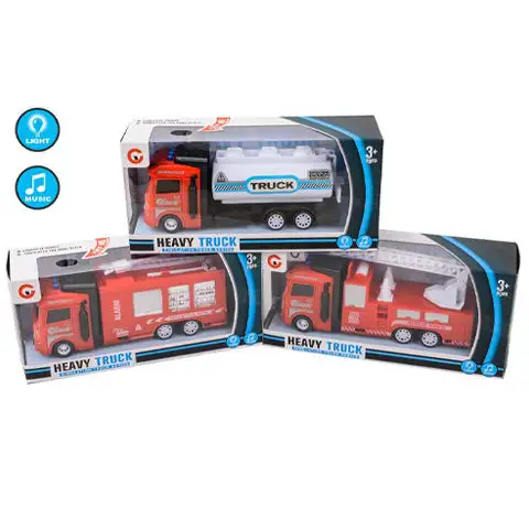 Hasičské auto je dostupné v několika verzích se světelnými a zvukovými efekty.Hasičské auto je dostupné v několika verzích se světelnými a zvukovými efekty.