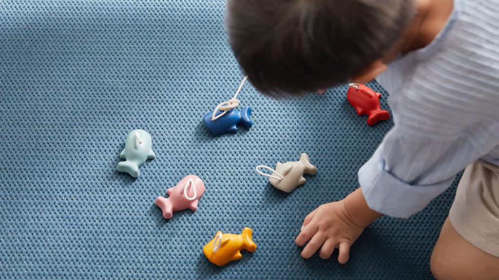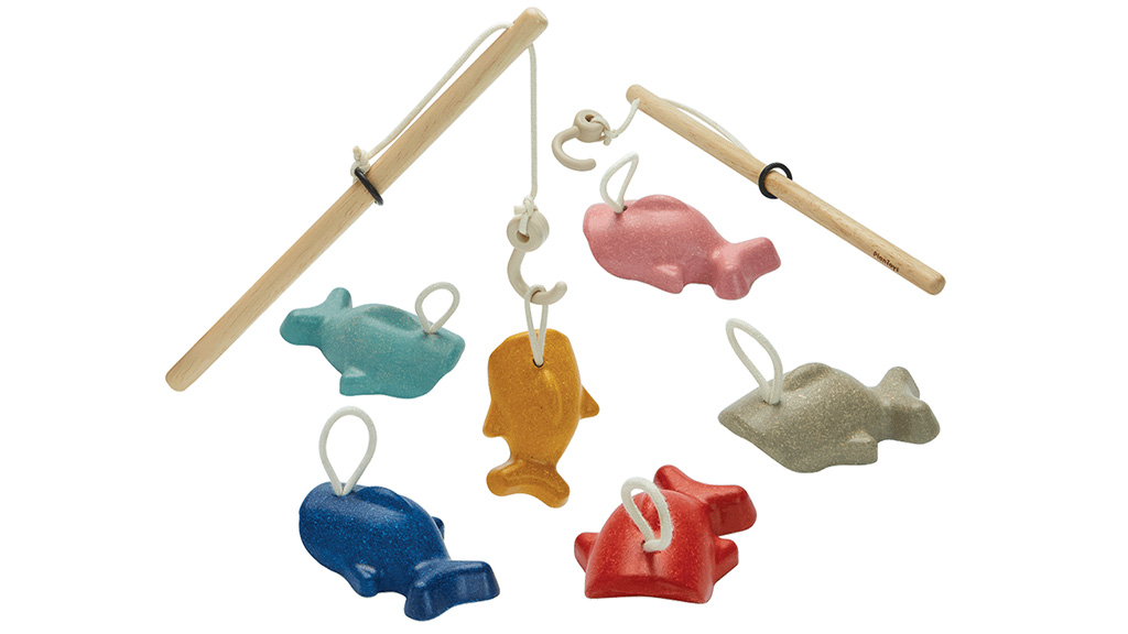 Sada obsahuje šest barevných ryb a dva dřevěné rybářské pruty. Pruty lze nastavit pro různé úrovně hry. Tato udržitelná sada je vynikající pro rozvoj koordinace ruka-oko, koncentrace a jemné motoriky.