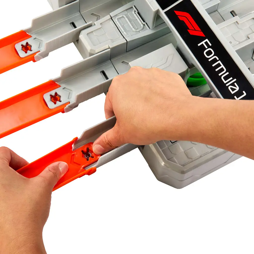 Součástí sady jsou také tři modely aut v měřítku 1:64 inspirované skutečnými týmy Formule 1, například Oracle Red Bull Racing, MoneyGram Haas F1 Team a Williams Racing. Díky systému Speed Snap Track lze trať snadno sestavit a rozšířit o další Hot Wheels prvky (prodávají se samostatně), takže děti si mohou stále vytvářet nové závodní zážitky.