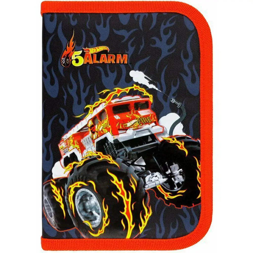 Pokud hledáte stylový a praktický penál pro svého malého milovníka autíček, Hot Wheels 5 Alarm rozkládací penál je tou perfektní volbou! Na poutavém obalu najdete ohnivý monster truck s planoucími koly, který si jistě získá srdce každého malého závodníka. Černé pozadí a červené motivy plamenů penálu dodávají opravdu cool vzhled, který dokonale doplňuje kontrastní červený zip a lemování.