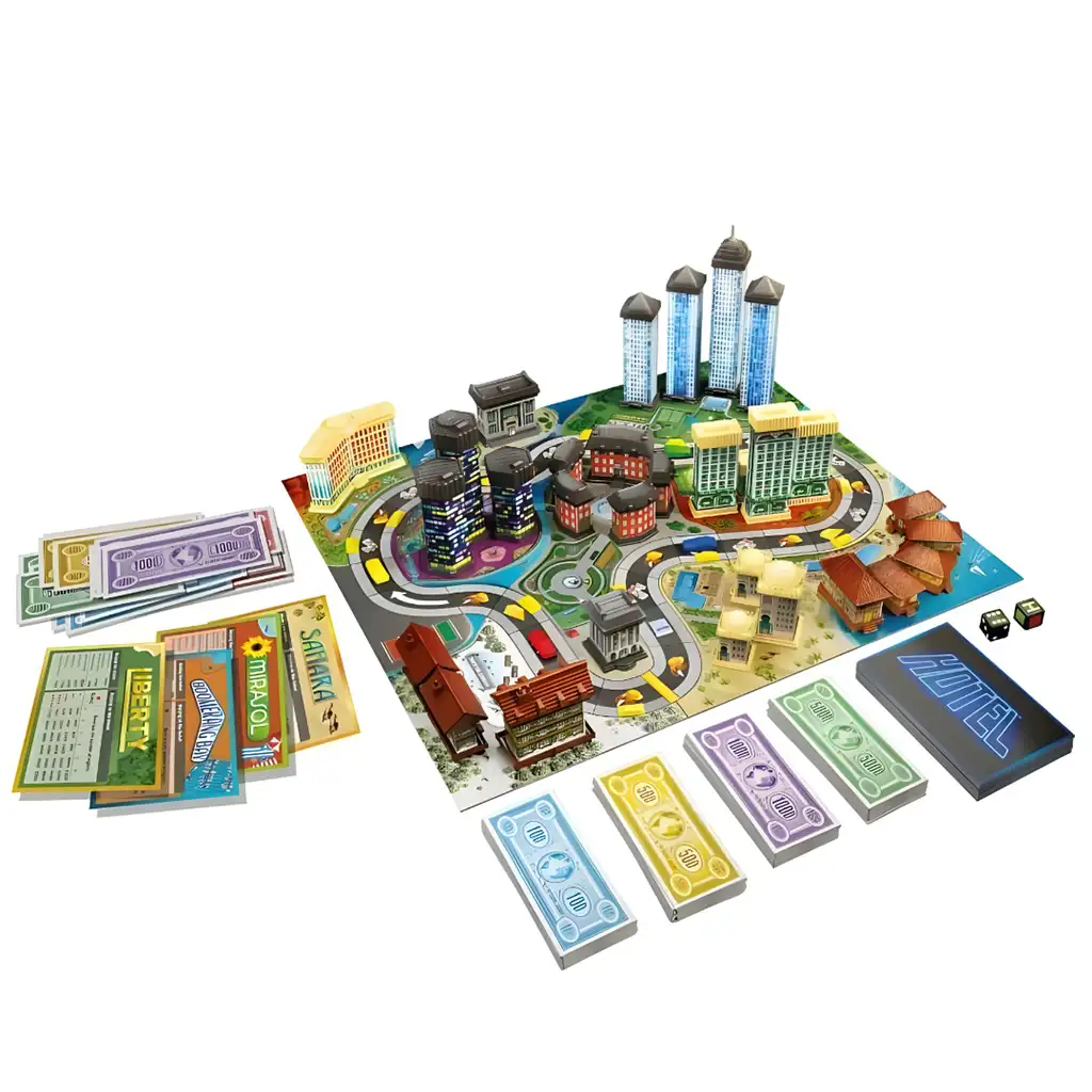 Společenská hra Hotel zavede hráče do světa bohatých podnikatelů. V této klasické hře, která je nyní k dispozici v novém balení, se hráči stávají nejbohatšími investory na světě. Kupují pozemky, staví hotely a rekreační parky, zatímco soutěží s konkurencí, aby dosáhli co největšího zisku.