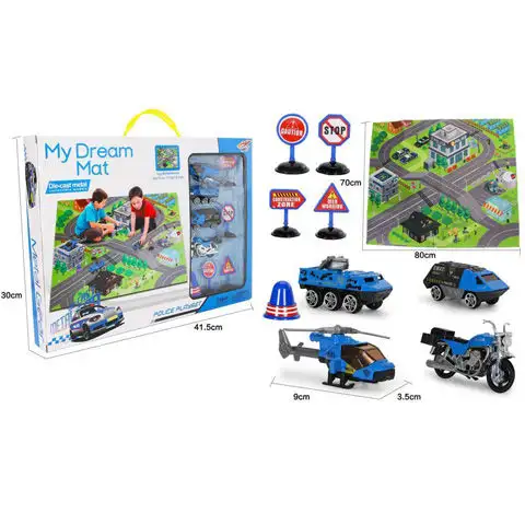 Oproti běžným malým autům jsou policejní speciální vozidla mnohem zajímavější a v tomto balíčku se můžete setkat s těmi nejlepšími, od obrněných transportérů až po vrtulníky. Tato skvělá krabice obsahuje vše potřebné pro opravdu speciální hru, protože obsahuje sedmdesát osmdesát centimetrů velký koberec, který zobrazuje část města, na kterém můžete cesty a domy ještě vylepšit malými dopravními značkami a se čtyřmi policejními vozidly můžete hrát městský provoz.