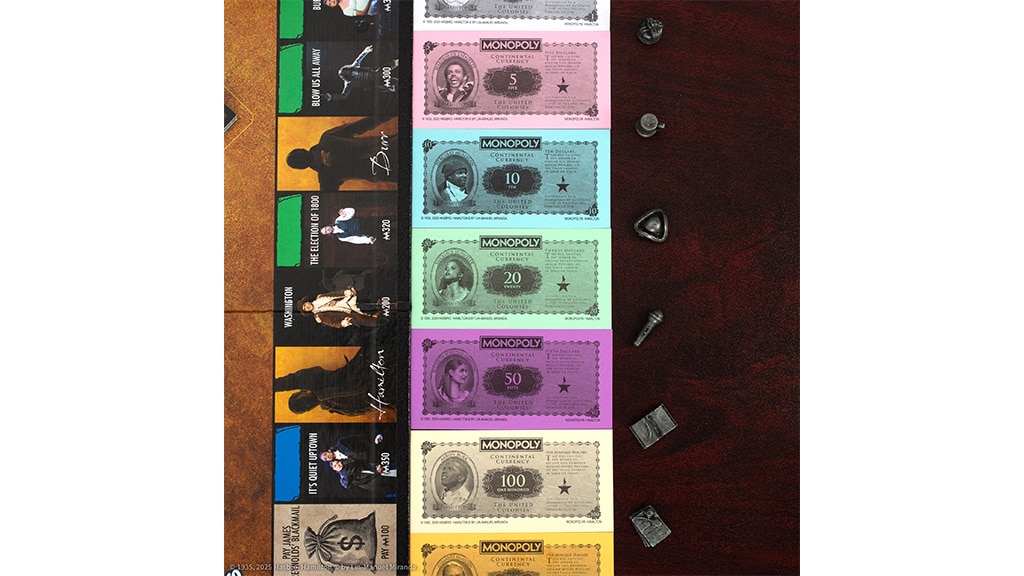 Tato speciální edice Monopoly byla vytvořena k oslavě 10. výročí muzikálu, ve které zaznívají ikonické písně jako „My Shot“, „The Schuyler Sisters“ a „You’ll Be Back“.