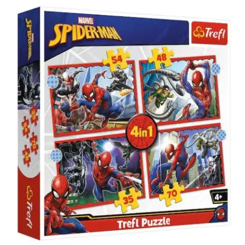Hrdina Spiderman 4 v 1 puzzle 70-54-48-35 ks - TreflHrdina Spiderman 4 v 1 puzzle 70-54-48-35 ks - Trefl